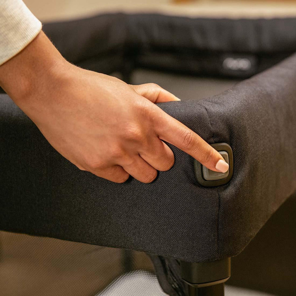 Upptäck det idealiska valet för ditt barn - Nuna Caviar Paal med lakan och nät. Denna mångsidiga rese- och leksäng kombinerar säkerhet och komfort med enastående design.
