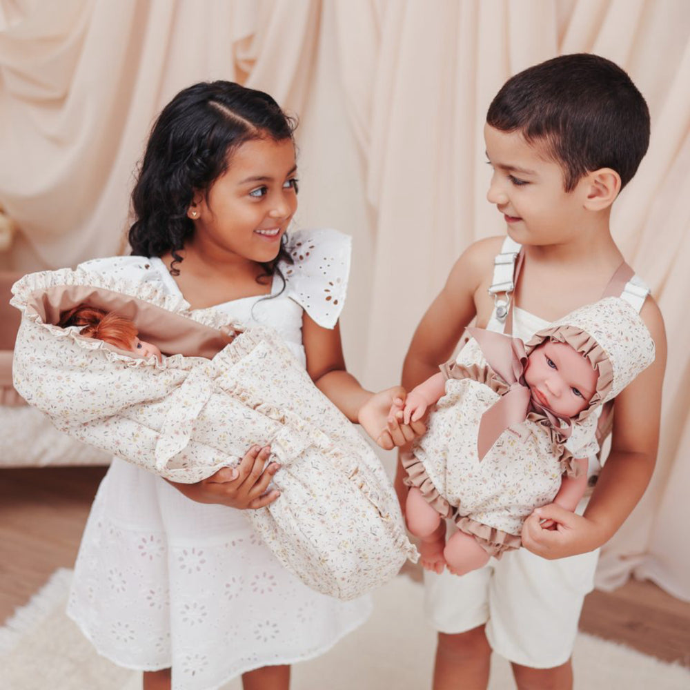 Upptäck Así Teresa Kollektion - Leonora, en förtjusande docka som förenar traditionellt hantverk med säkerhet och lärdom för barn. Denna docka, som är kärleksfullt designad och tillverkad i Onil, Spanien, är inte bara ett leksak utan en möjlighet för barn att utveckla sin empatiska förmåga och fantasi. Leonora är 46 centimeter lång och passar perfekt för barn som önskar en realistisk lekkamrat. Med klara ögon och detaljrikedom erbjuder hon en engagerande upplevelse.