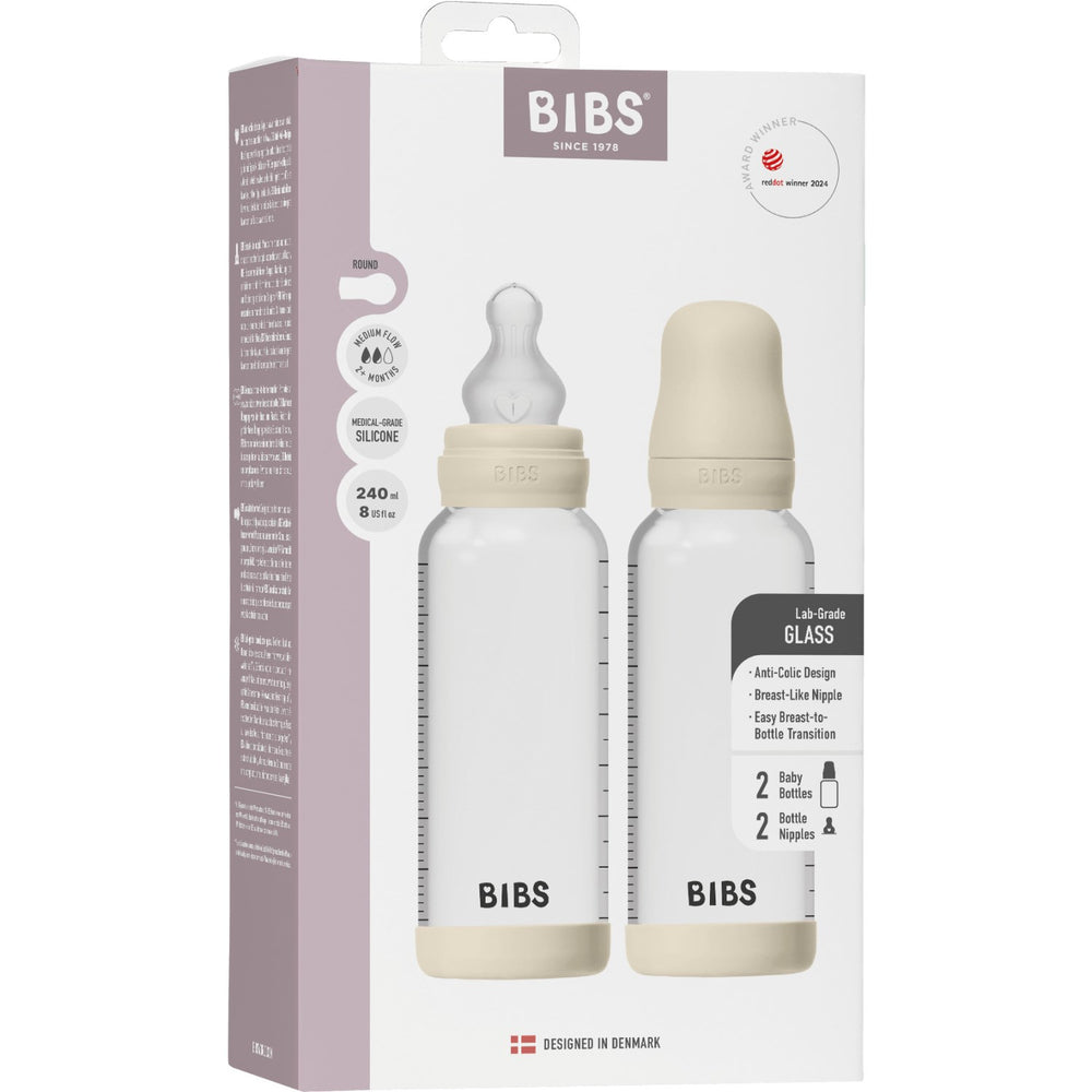 Bibs Ivory Glass Baby Flaska Round Silikon 2-Pack 240 Ml Medium Flow