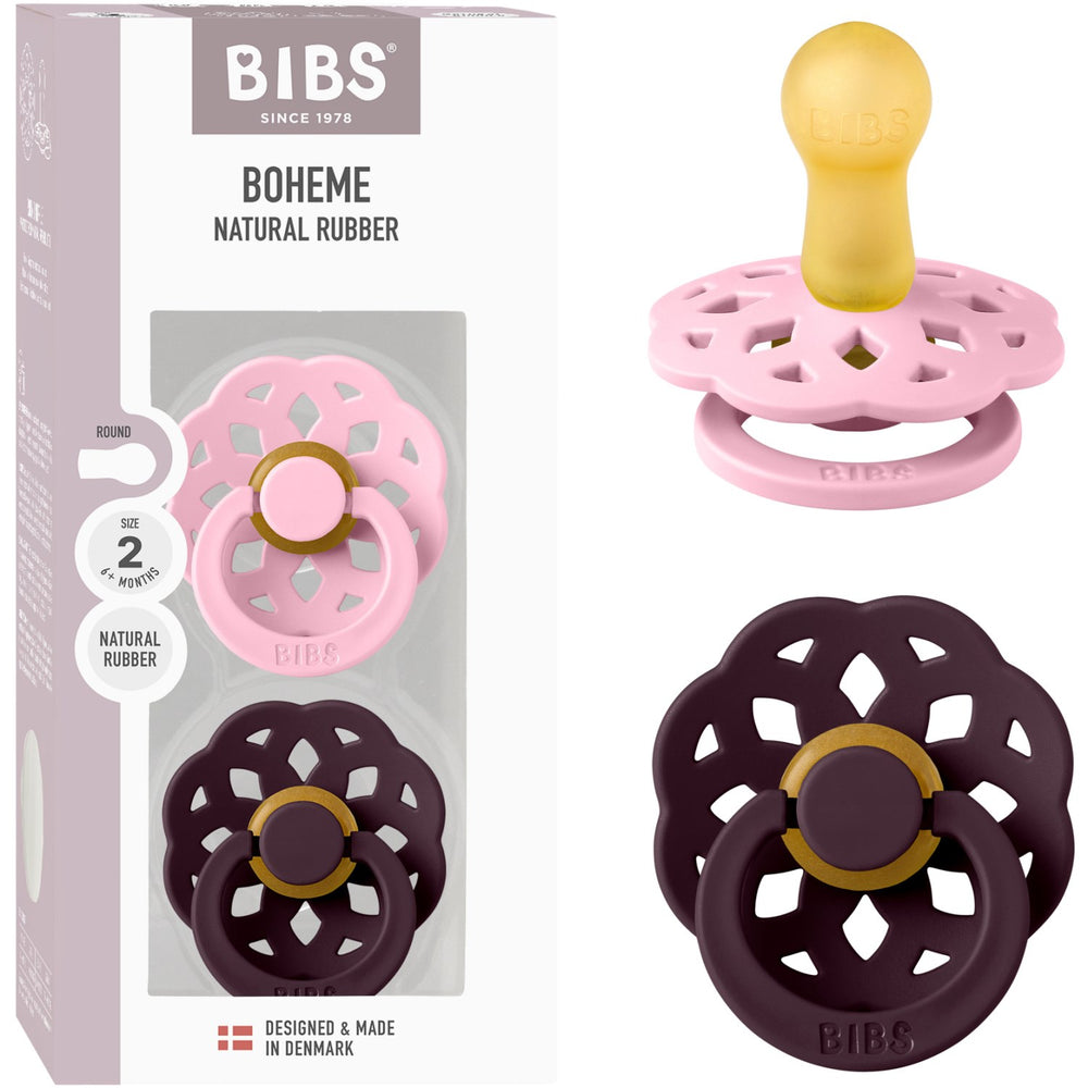 Bibs Pink/Plum Napp Boheme 2-Pack Latex - Size 1 är restnoterad och kommer att skickas så snart den är tillbaka i lager.