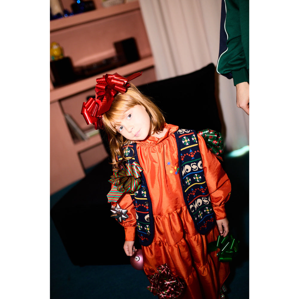 Färgstark och lekfull, Bobo Choses stickade väst pryds av ett charmigt mönster med leksaker över hela. Tillverkad i mjukt material som garanterar komfort, är denna multifärgade väst perfekt för kyliga dagar. Passformen är idealisk för barnets rörelsefrihet, och västen kan enkelt tvättas i maskin. Ett utmärkt val för både stil och funktionalitet i barnets garderob. Material: 30 % återvunnen viskos, 5 % återvunnen kashmir, 35 % återvunnen polyamid, 30 % återvunnen ull Tvättråd: 31 - Tvätta kallt, Blek inte, 00 - Stryk inte, Kemtvätta inte, Torktumla inte