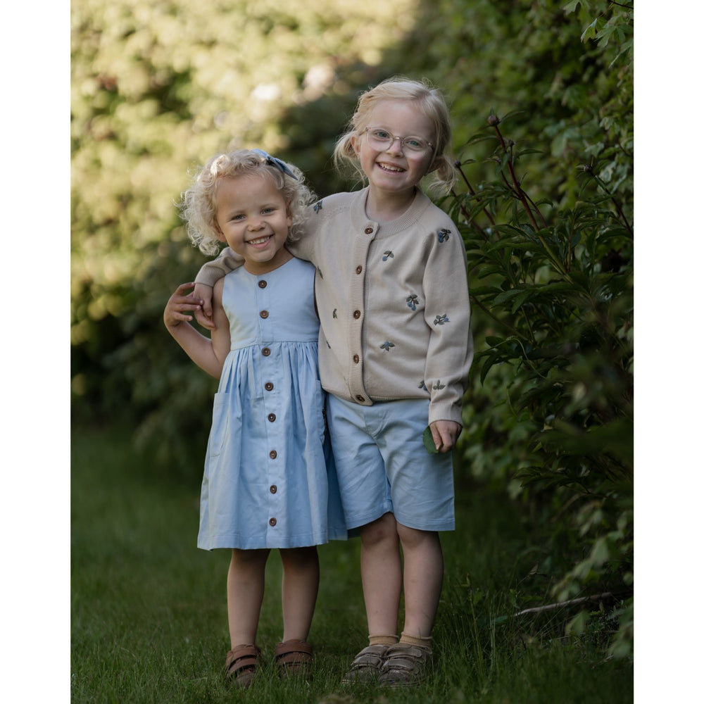 Upplev komfort och stil med Hanevild Kentucky Blue Thøger Shorts. Dessa ljusblå shorts är tillverkade av 100 % mjuk och miljövänlig ekologisk bomull, vilket garanterar både hållbarhet och skonsamhet mot barnens känsliga hud. Med ett elastiskt midjeband anpassar de sig smidigt efter barnets rörelser och erbjuder en fantastisk passform. Dessutom är de utrustade med praktiska framfickor för små skatter som barnen vill ha med sig. Det subtila och fräscha blåa färgschemat tillsammans med en minimalistisk design gör dessa shorts till både ett funktionellt och fashionabelt val. De är lätta att underhålla med maskintvätt på 30°C och bör läggas platt för torkning för att behålla formen. Perfekt för varje sommareventyr, dessa shorts främjar rörelsefrihet och är idealiska för lek eller familjesammankomster.