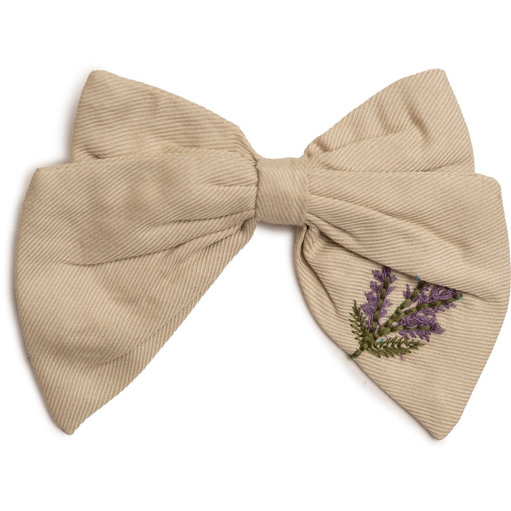 Upplev den söta stilen med Hanevild Summer Sand Vibe Rosett, perfekt för att komplettera ditt barns outfit. Tillverkad i mjukt bomullstyg med en sida utsmyckad av vackra broderade blommor. I en lugnande sandfärg, är denna hårrosett lika praktisk som den är elegant: den ska inte tvättas eller torktumlas, utan enbart läggas platt för torkning. Idealisk för daglig användning, lägger den till en charmig touch utan att kompromissa med komfort.
