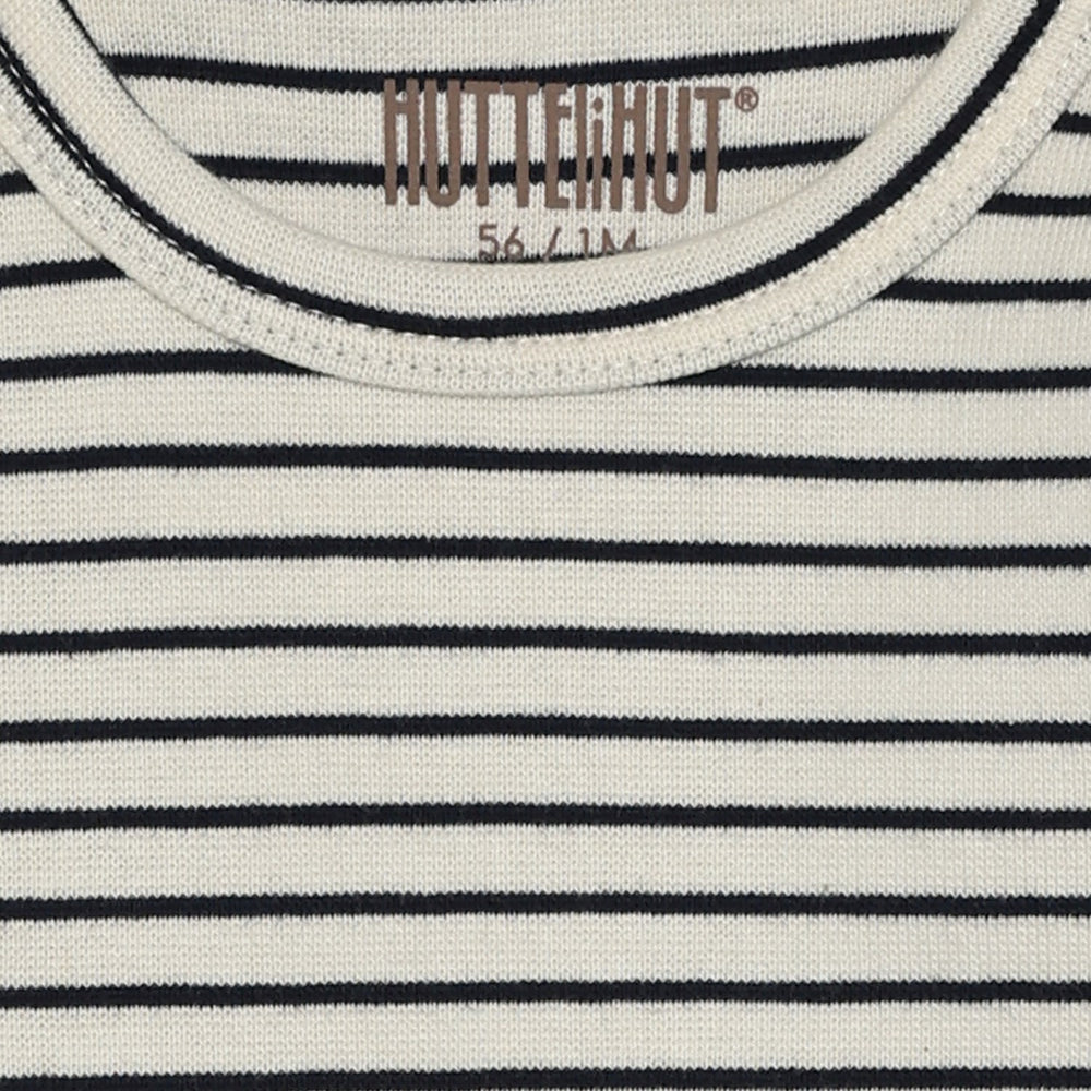 Upptäck vår Huttelihut Navy Blazer Body LS YD Stripe, en underbart randig långärmad bodystocking som kombinerar stil med bekvämlighet. Det marinblå kavajmönstret ger en sofistikerad look, medan det mjuka materialet av 97% bomull och 3% elastan erbjuder din lille maximal komfort och möjlighet till rörelse.