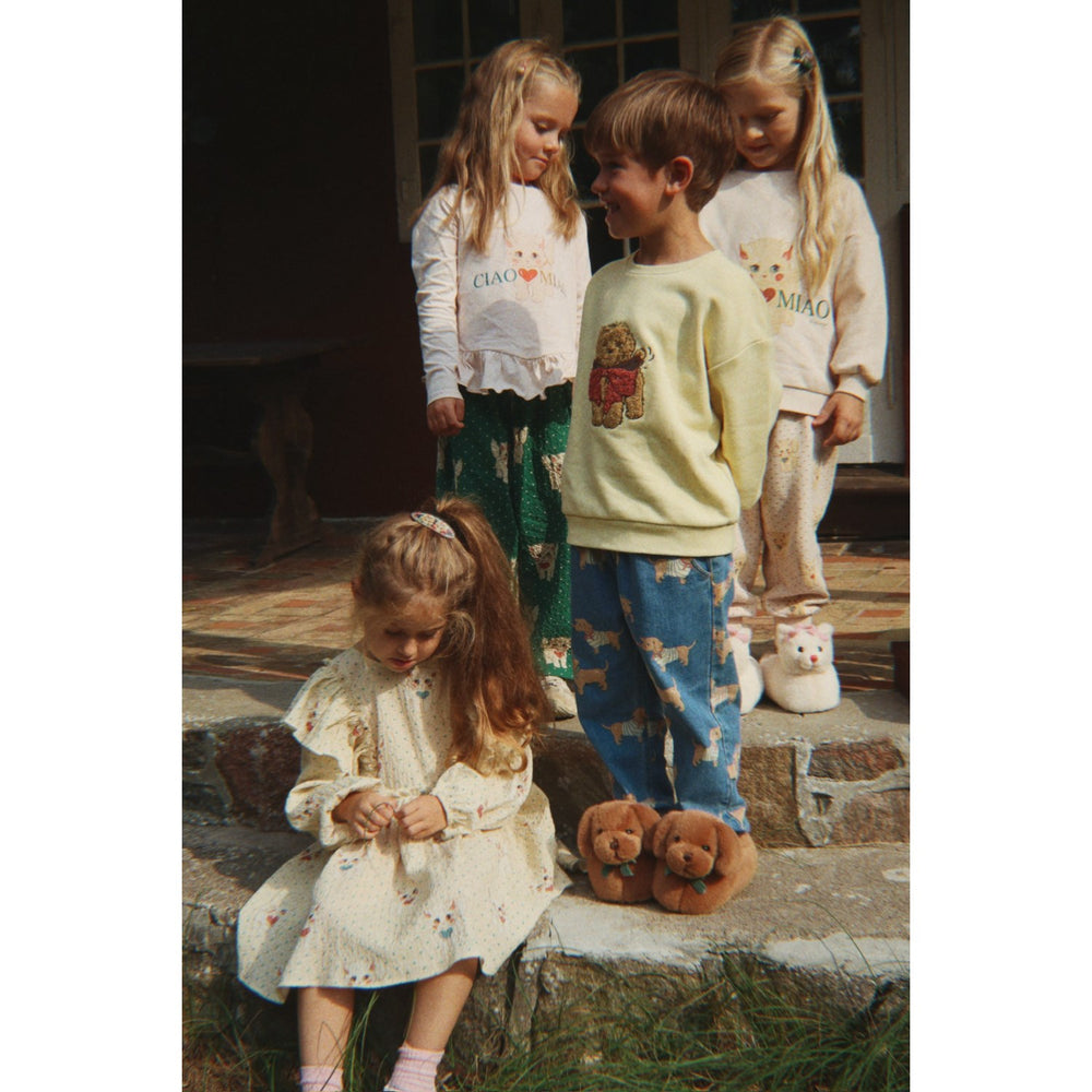 Upptäck den charmiga "Konges Sløjd Dot Miao Mist Elin Rosett Klänning", perfekt för små äventyrare. Tillverkad i luftig och ekologisk bäckebölja, erbjuder denna klänning en kombination av komfort och stil med sina voluminösa ärmar och klassiska volanger. Den dekorativa rosetten i ryggen adderar en unik touch. Dess material är GOTS-certifierat (CU1094701), vilket garanterar hållbarhet och miljövänlighet. Klänningen är idealisk för både festliga tillfällen och vardagligt bruk, där den låter barnet röra sig fritt och bekvämt. Material: 98% Ekologisk bomull, 2% Elastan