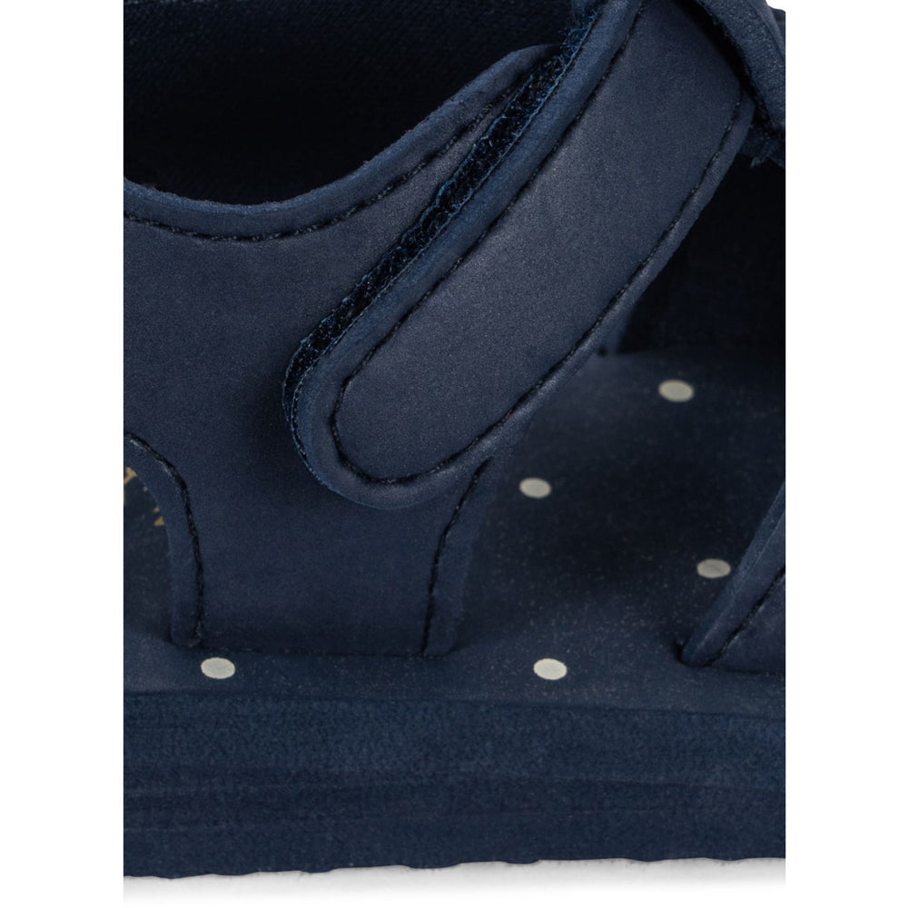 Upptäck Konges Sløjd Navy Blazer Sable Sandal – perfekta för små upptäckare! Dessa stilrena sandaler är tillverkade i hållbara material och har en elegant marinblå färg med diskreta mönster. Enkla att justera med kardborreband, vilket säkerställer en perfekt passform. Den mjuka fotsängen bidrar till ökad komfort, medan den flexibla och slitstarka yttersulan gör skorna idealiska för lek och rörelse. Dessutom är de enkla att sköta om, så att de förblir fina längre. En utmärkt sandal som kombinerar funktionalitet med stil för ditt barns sommaräventyr.