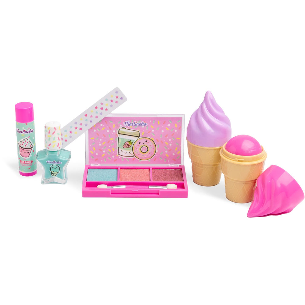 Upptäck Martinelia YUMMI Sparkle Beauty Sett – den perfekta presenten för det lilla barnet i ditt liv! Detta charmiga smink- och nagellackset är paketerat i en attraktiv presentask och innehåller en ögonskuggspalett med tre färgval och applikator, tre stycken vårdande läppbalsam, ett barnvänligt nagellack, samt roliga klistermärken. Setet är framtaget med barnens säkerhet i åtanke, där alla produkter är testade för att vara skonsamma mot känslig barnhud.