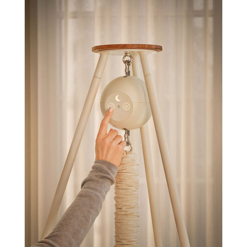 Produkten är försedd med avancerad appkontroll och realtidssynkronisering via Moonboon-appen, vilket tillåter dig att smidigt anpassa hastighet och tid baserat på ditt barns behov. Välj bland tre noggrant framtagna sömnprogram, perfekt anpassade för att understödja en naturlig sömncykel, oavsett om det gäller en snabb tupplur eller en hel natts vila.