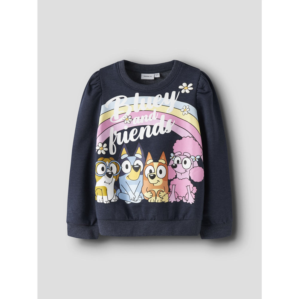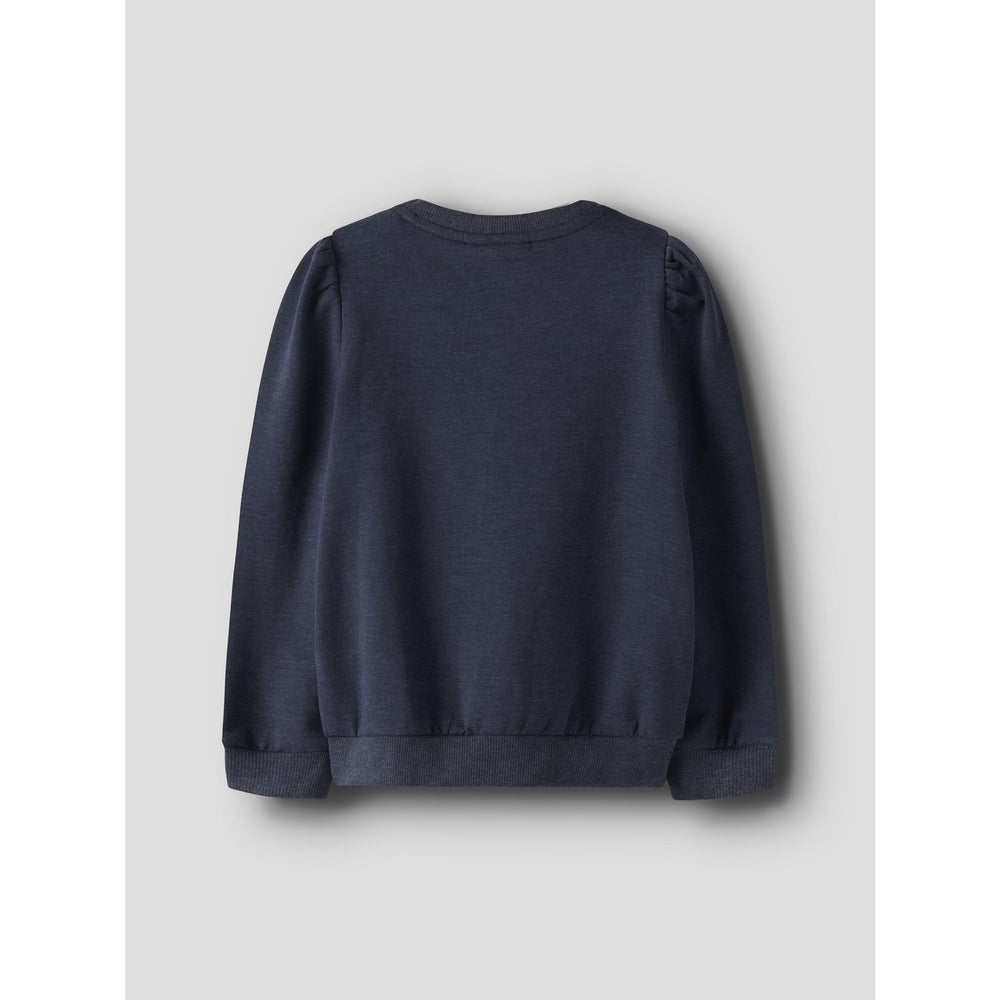 Denna mysiga sweatshirt från Name It är det perfekta valet för ditt barns vardagliga äventyr. Framställd i borstad svettduk vilket ger en mjuk insida och en komfortabel känsla, designad i en stilfull marinblå melange med glittriga detaljer som tillför en lekfull touch. Klädesplagget är prydd med skumtryck som skapar en puffig effekt och ger ett tredimensionellt utseende, medan gummitrycket säkerställer en mjuk yta.