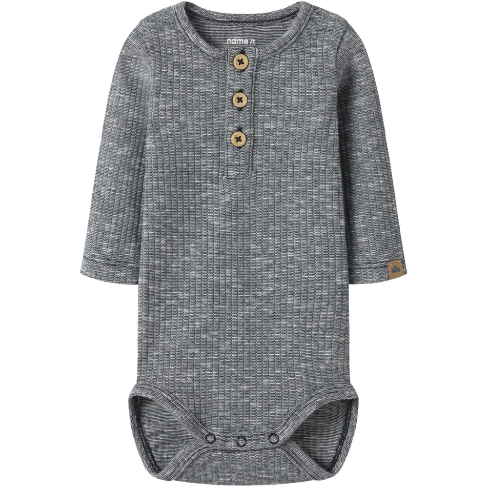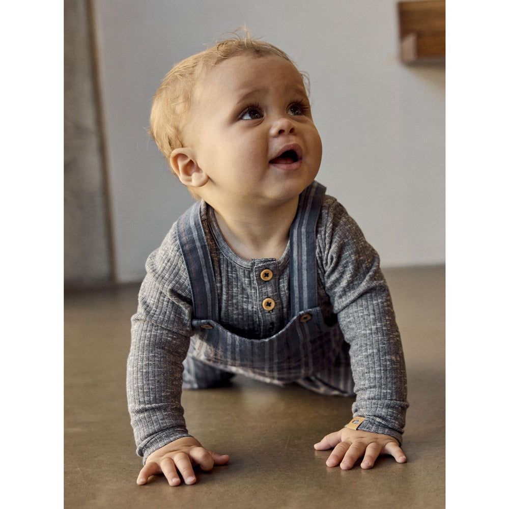 Uppdatera din lilla äventyrares garderob med Name It Navy Blazer Nbmderry Ls Body, en ribbstickad bodysuit som kombinerar både stil och funktion. Denna charmiga body har ett elegant, vertikalt randigt mönster i marinblå nyans som ger en klassisk touch. Tillverkad med omsorg för att garantera både mysighet och rörelsefrihet, bodysuiten är idealisk för lekfulla dagar. Den har långa ärmarna och en praktisk knappfästning fram samt tryckknappar i grenen vilket underlättar på- och avklädningen. Varumärkets logga tillför en extra fin detalj till denna tidlösa design. Passar utmärkt året runt och är lätt att sköta om, vilket gör den till en oumbärlig del av ditt barns vardag. Material: 65% Bomull - Ekologisk, 30% Viskos LENZING™ECOVERO,™ 5% Elastan Tvättråd: Maximal tvättemperatur 40°C - Normal process