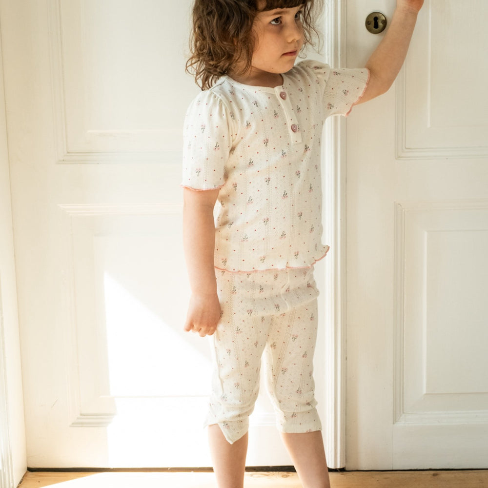 Upptäck vår charmiga "That's Mine Blooming Love Ginny T-shirt", perfekt för både lekfulla dagar och finare tillfällen. Denna T-shirt, tillverkad i behaglig ekologisk bomull, bjuder på komfort hela dagen och är enkel att ta på tack vare praktiska knappknappar vid nacken. Den bedårande designen med heltäckande Blooming Love-mönster gör varje outfit livfull. En mångsidig och stilfull must-have i barnens garderob!