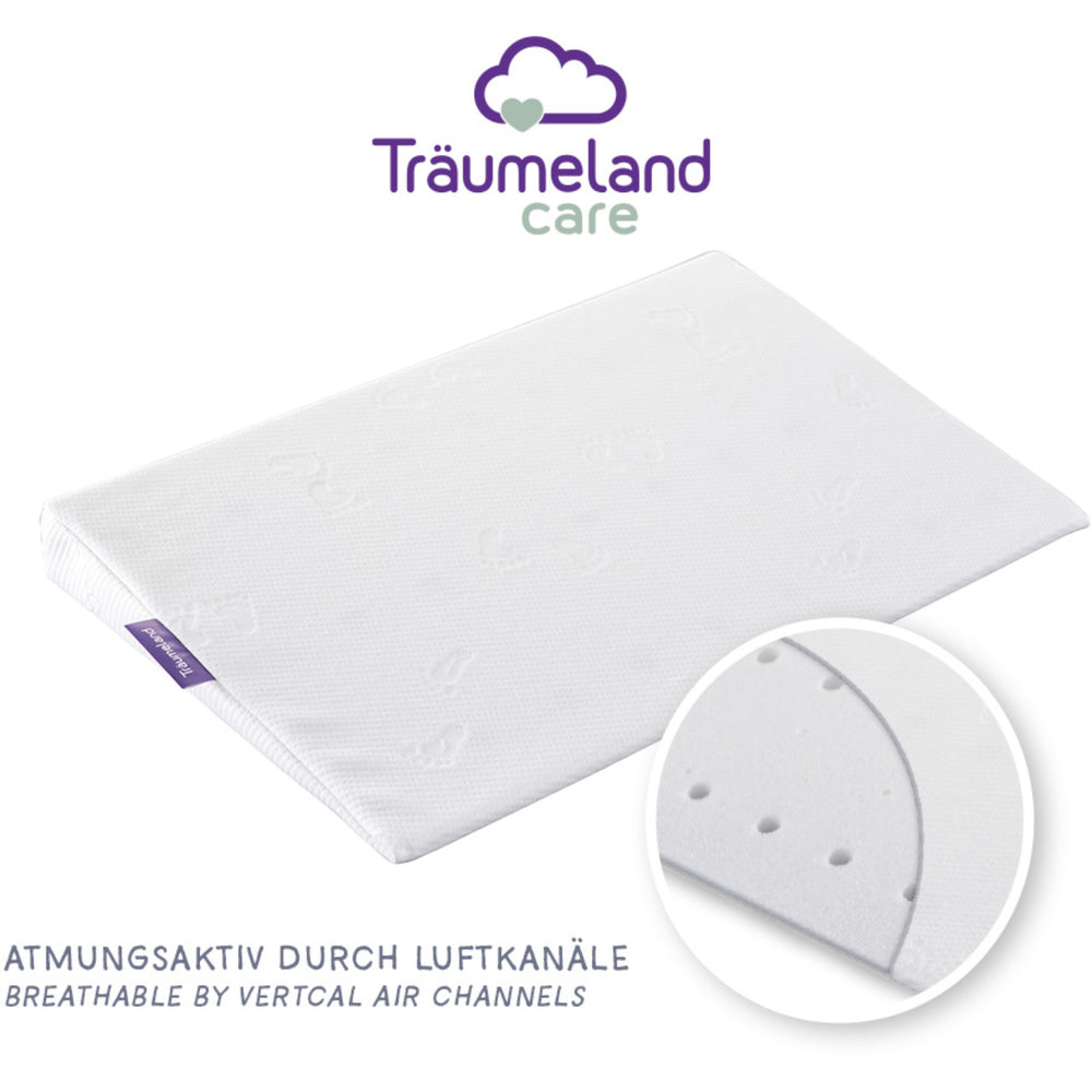 Vi presenterar Träumeland White Wedge-Cushion Maxi, ett måste för spädbarn i åldern 6 till 18 månader. Den är speciellt utformad för att lyfta ditt barn bekvämt och är perfekt för dem med förkylningar eller spädbarn som är benägna att spotta upp. Dess mångsidiga design stöder tidig utveckling och blandar säkerhet, komfort och användarvänlighet. Den här kudden är inte bara lätt att underhålla och förvara, utan erbjuder också stimulerande stöd för ditt växande barns behov. Fyllning: Kallskum av hög kvalitet Material: 100% polyester Mått: Storlek 35 x 60 cm Tvättråd: 60 grader, lämplig för skonsam maskintorkning Certifieringar: OEKO-TEX STANDARD 100, 47693 OETI