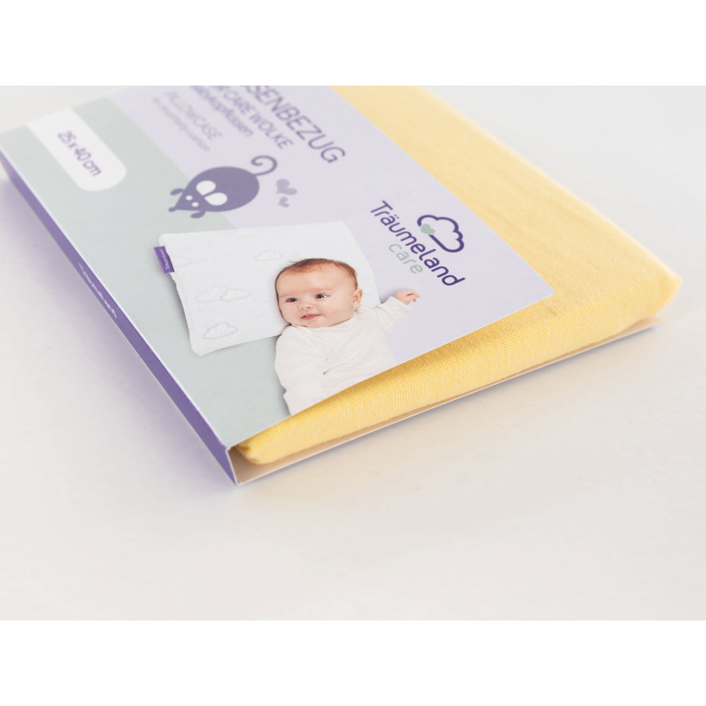 Upptäck Träumeland Yellow Pillowcase, ett charmigt tillskott till ditt barns sängkläder. Den är designad speciellt för molnkudden och säkerställer enkel användning med en åtsittande passform som är lätt att byta. Det här örngottet är tillverkat av säkerhetscertifierade material och ger både komfort och stöd för lugna nätter. Den glada gula nyansen stimulerar den visuella utvecklingen samtidigt som underhållet är enkelt – det är bara att tvätta och återanvända. Perfekt för att skapa en mysig, organiserad sovmiljö.