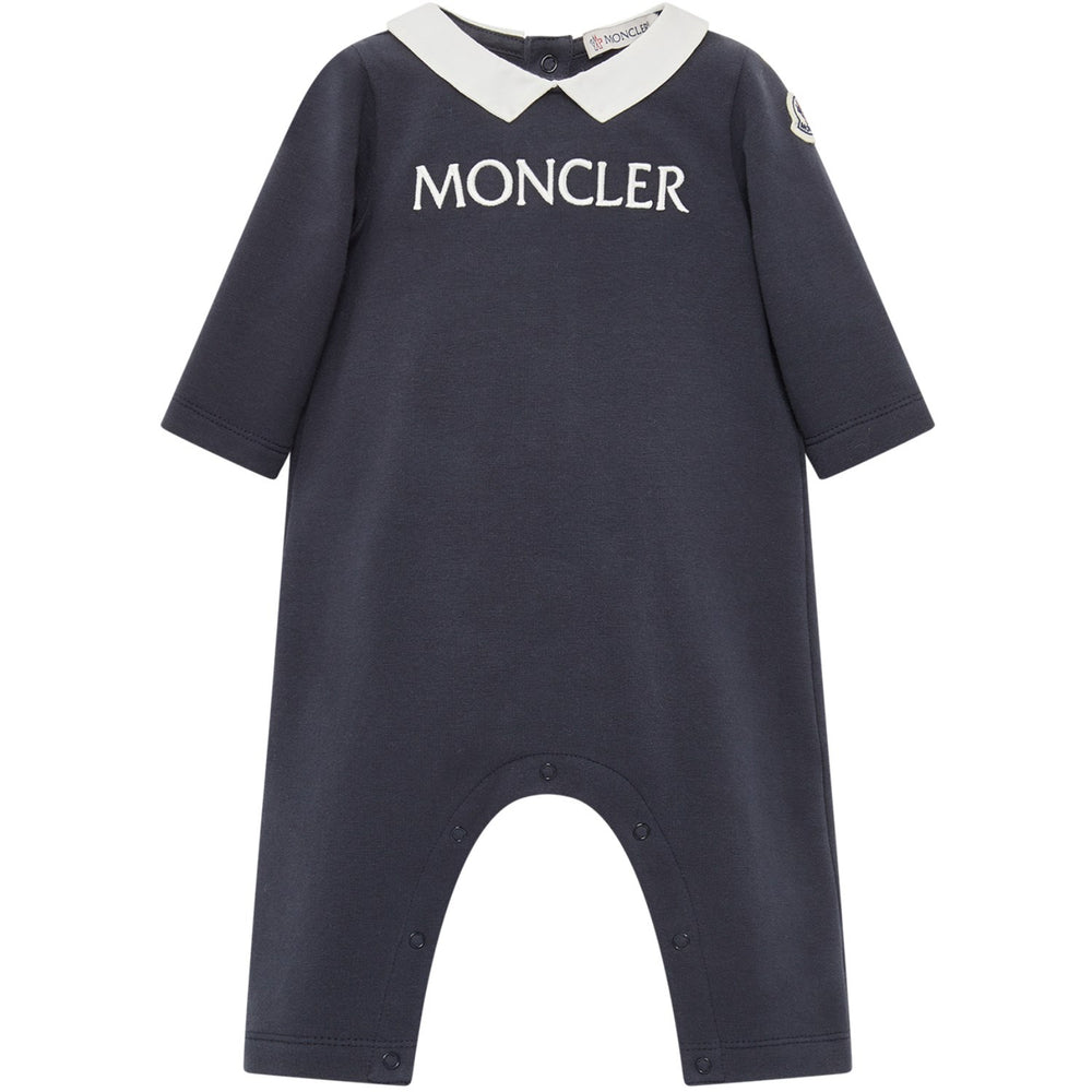 Klä din lilla i symbolen för komfort och stil med denna Moncler Navy Romper . Den är tillverkad av mjuk, stretchig bomullsfleece och garanterar komfort hela dagen. Med en charmig kontrast Peter Pan krage och prydd med den ikoniska Moncler logotypen, gifter denna onesie lyx med praktiska egenskaper. Enkla tryckknappar gör påklädningen snabb och krångelfri, perfekt för aktiva bebisar på språng!