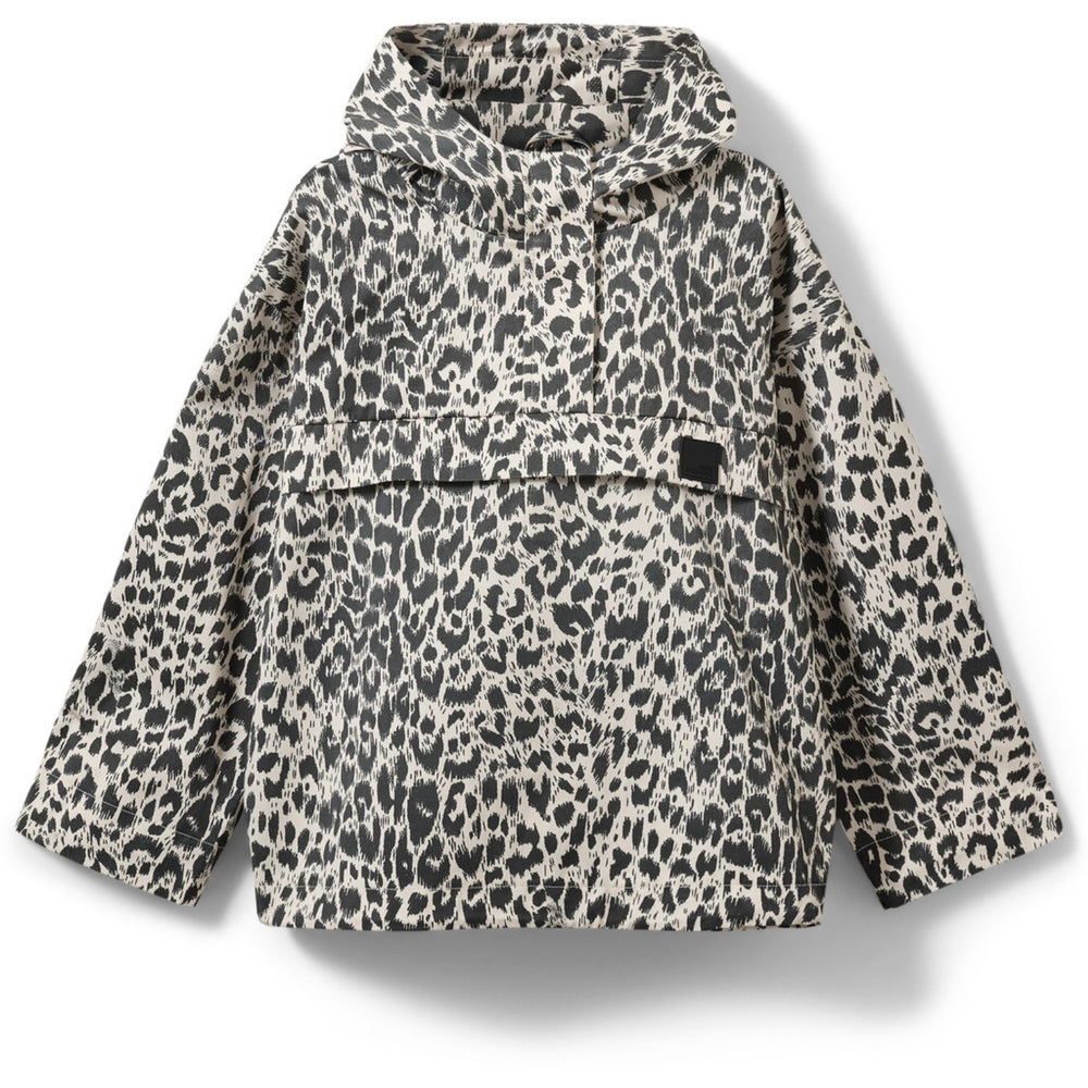 - Extra: Anorak-stil med halv dragkedja/knappstängning fram, fast huva, vindklaff över bröstet, rak nedre fåll, liten logotyppatch på bröstet