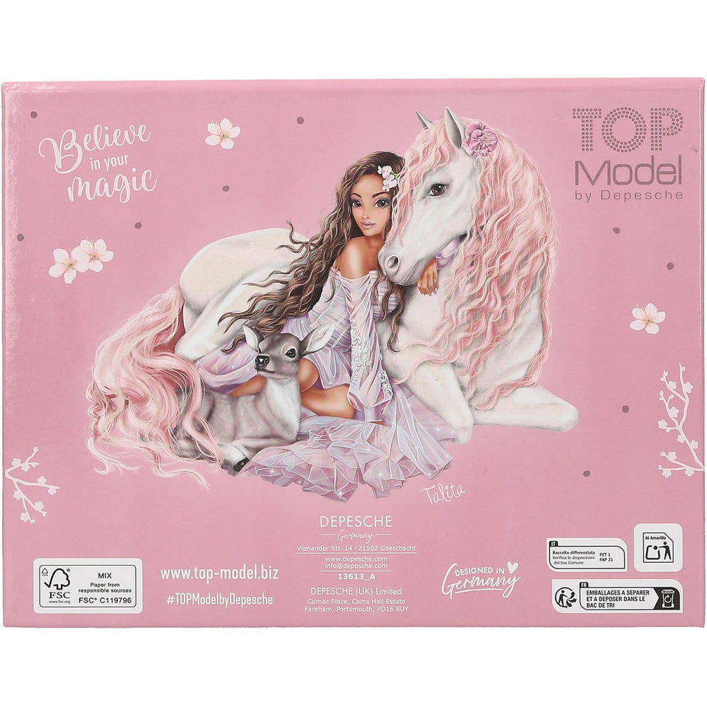 Upplev den förtrollande TOPModel Viva Violet Stationery Box – en perfekt skattkista för varje ungt skrivintresserad barn. Detta set, med sin mjukt rosa design prydd av ett vackert modellmotiv och en drömsk bakgrund med blommor, träd och ett vitt slott, lockar fram kreativiteten hos barnet och tillsätter en magisk touch till varje skrivuppgift.
