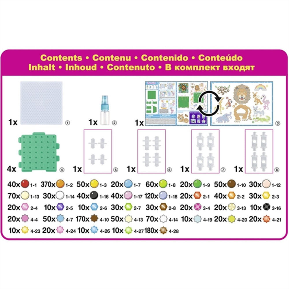 - Innehåller: pärlor, pärlplatta, vattenspruta, 4 dekorationsplattor med klämmor och motivmallar