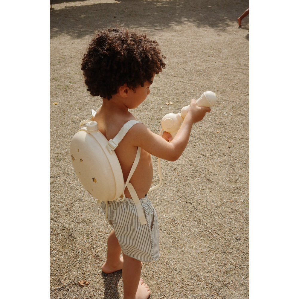 Upptäck Konges Sløjd Tea Stripe Seer Asnou Swimshorts – perfekta för lekfulla dagar vid vattnet! Dessa stilfulla badbyxor är tillverkade av 61% återvunnen polyester och 39% polyester, vilket gör dem både miljövänliga och slitstarka. Med en charmig seersucker-design och justerbar dragsko i midjan garanterar de en perfekt passform och maximal komfort. Idealiska för barnets alla vattenäventyr!