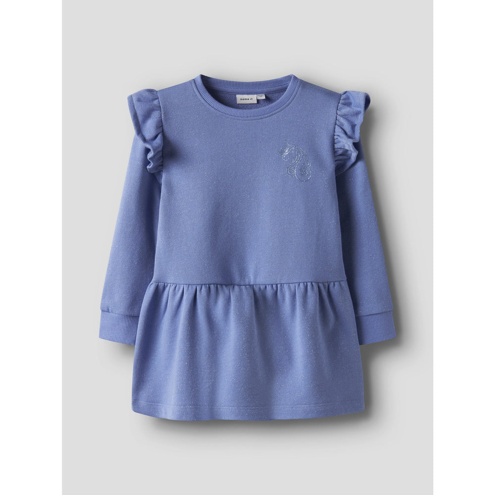 Uppdatera din lilla stjärnas garderob med vår "Name It Persian Jewel Nmftilde Nreg Swe Klänning Unb Pb", perfekt för varje säsong och särskilda tillfällen. Tillverkad i ett oborstat svetttyg har denna charmiga klänning en slät yta med öglor på insidan, vilket erbjuder en särdeles mjuk och bekväm känsla. Med en klassisk rund hals och långa ärmar känns den lika skön som den ser ut. Designen framhäver en elegant skärning i midjan och lekfulla volanger som tillför en dos av glädje och rörelsefrihet. Normal passform säkerställer att den sitter precis rätt och passar till vardag såväl som till fest. Klänningen tvättas enkelt i maskin, vilket gör den till ett praktiskt val för livliga barn.