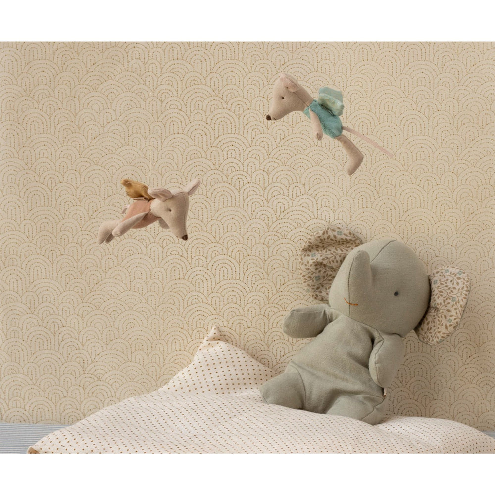 Ge ditt barn tjusningen av en magisk följeslagare med Maileg Fe Mus, Little i en bedårande rosa färg. Denna charmiga tygdocka är utformad för att inspirera och sprida glädje. Perfekt för barn som älskar sagor, musen har mjuka vingar och ett snöre på ryggen, vilket gör att den kan flyga runt i barnens lekar eller dekorativt hänga i deras rum.