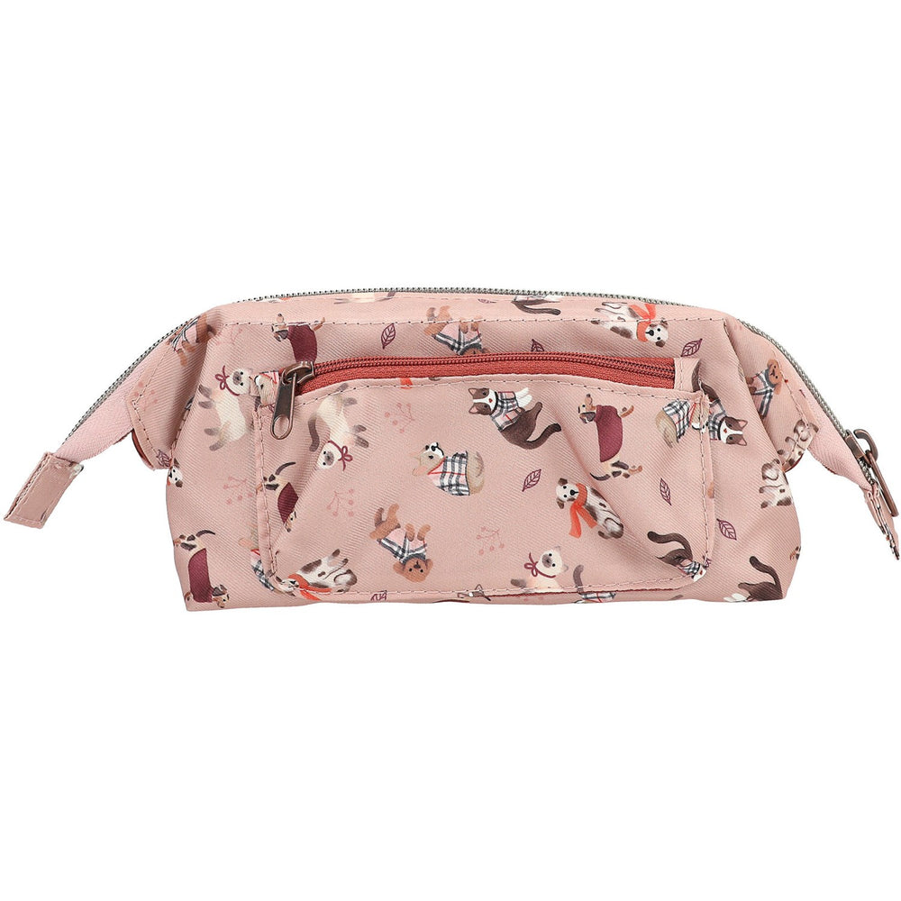 Upptäck vår charmiga TOPModel Pennväska i puderrosa, perfekt designad för små konstnärers behov. Prydd med ett bedårande dubbelmotiv av en hund och en kattunge på framsidan, erbjuder denna väska inte bara estetisk tilltalande utan även praktisk funktionalitet. Dess ryggflär sätter ett sött blickfång med sitt mönster av lekfulla hundar och katter.
