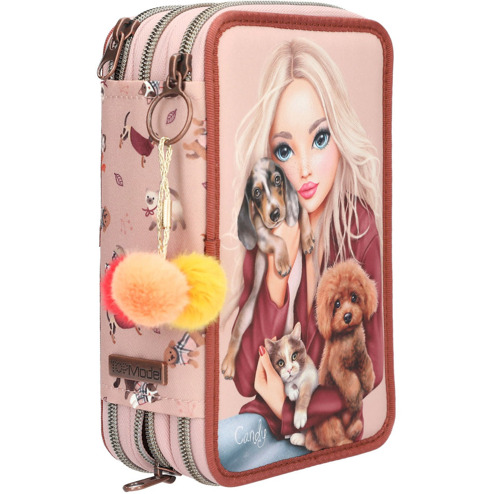 Ta en titt på vårt charmiga TOPModel Fur Ever Friends pennfodral, perfekt för det kreativa barnet. I en ögonfångande puderrosa och kopparfärgad design, pryds detta pennfodral av ett stort motiv med två hundar och en katt. Det är inte bara framsidan som charmar - även ryggen och sidorna är dekorerade med flera söta hundar och katter.