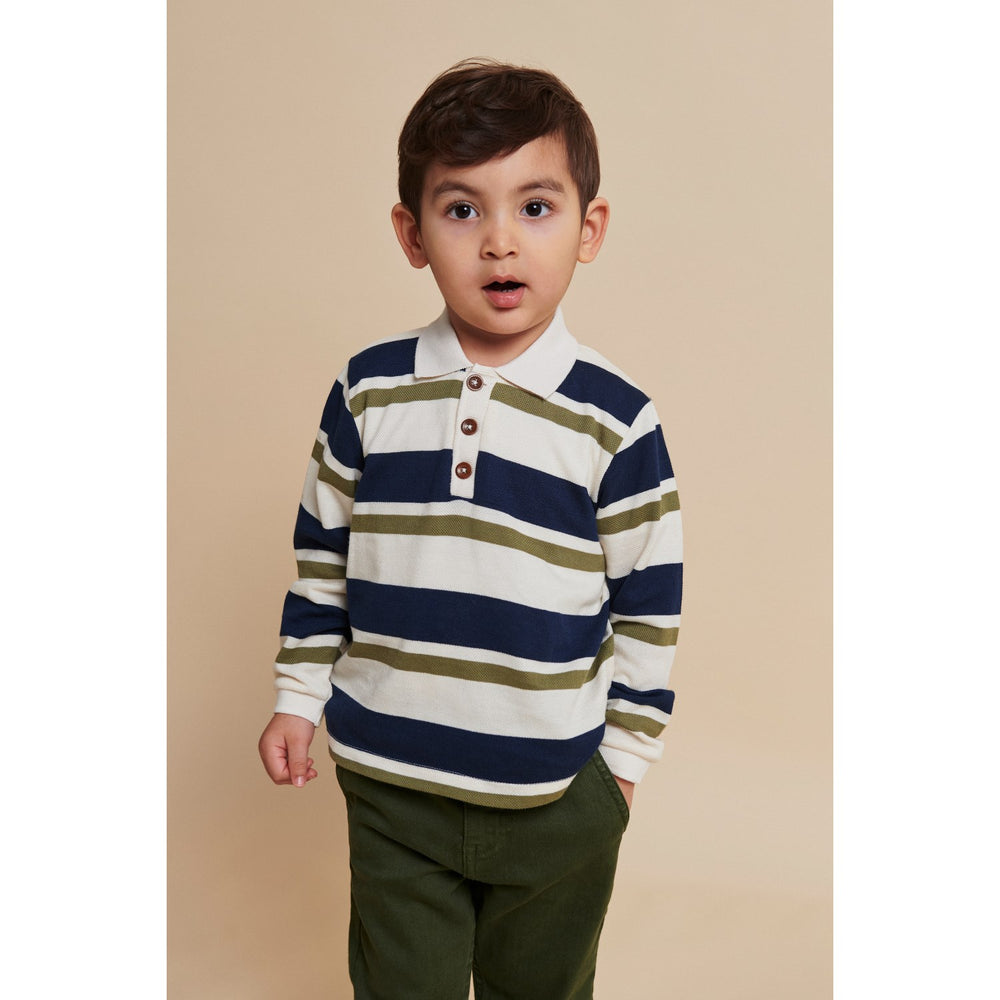 Upplev bekvämlighet och stil med vår COPENHAGEN COLORS Green Combi Striped Pique pikétröja för barn. Denna pikétröja, designad i mjuka gröna nyanser med snygga ränder, är tillverkad i 100% ekologisk bomull som är skonsam mot barnets hud. Tröjan har långa ärmar och praktisk knappstängning vid bröstet, vilket gör den lätt att ta på och av. Dess bekväma passform och slitstarka material gör den idealisk för lekfulla dagar. Lätt att sköta, maskintvättbar och håller sig fin tvätt efter tvätt.