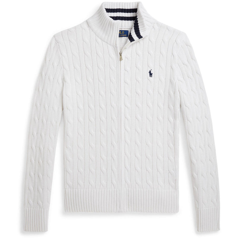 Denna Polo Ralph Lauren-cardigan i vitt är det perfekta tillägget till barnens garderob. Tillverkad i mjuk, hållbar bomull och designad med en stilren hel dragkedja, erbjuder den både komfort och lättanvändlighet. Dess klassiska design med diskret logotyp kombinerar funktionalitet med en tidlös stil. Perfekt för svala dagar eller som ett mysigt lager under jackan. Lätt att sköta om och kan maskintvättas. Material: 100% Bomull
