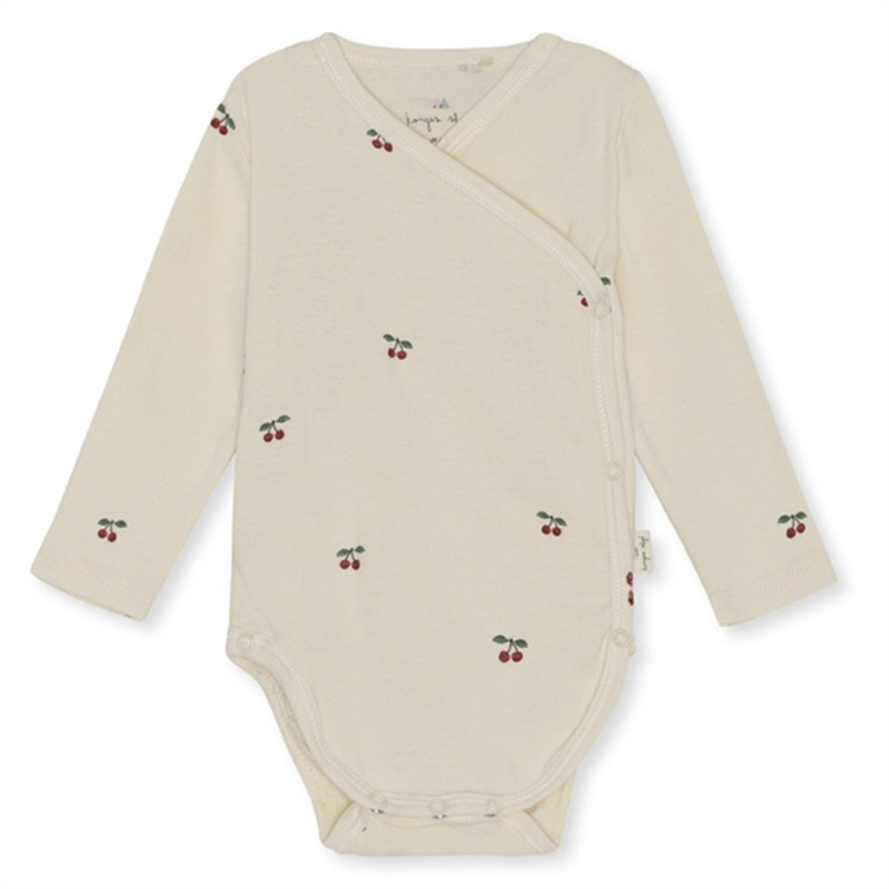 Klä ditt barn i Konges Sløjds omsorgsfullt designade Cherry Newborn Bodystocking, perfekt för nyfödda. Tillverkad i mjuk, ekologisk bomull som är skonsam mot känslig hud. Bodyn är prydd med ett charmigt körsbärsmönster och har praktiska tryckknappar för enkel på- och avklädning. En kombination av stil, komfort och funktionalitet som gör den till ett utmärkt val för ditt barns första garderob.