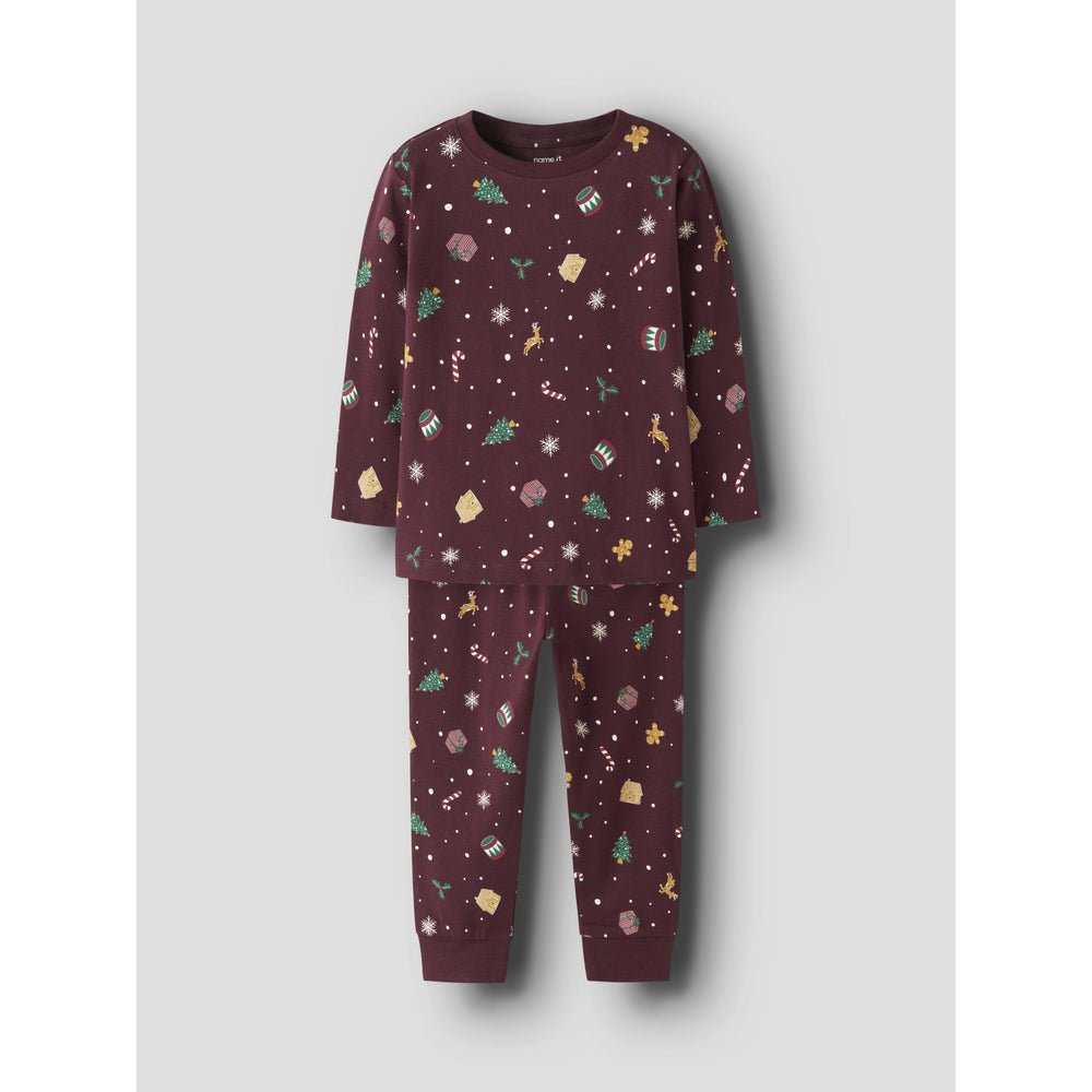 Name It Burgundy Xmas AOP Nmnvismas Ls Nightset