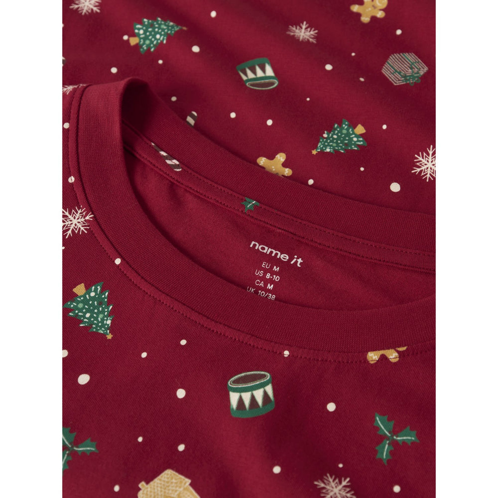 Name It Jester Red Xmas AOP Red Nanvismas Ls Nightset Voksen