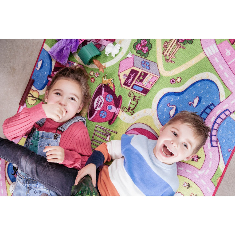 Ta med färg och fantasi till barnrummet med Rebel Roads Fairground Life Matta! Denna lekfulla matta är designad för att fängsla och stimulera unga sinnen med dess levande åkattraktioner och frodiga färger. Säker och funktionell, dess polyamidöverdel med halkfri latexbotten garanterar stabilitet under lek. Mattans attraktiva mönster inte bara dekorerar rummet utan även inspirerar till kreativa lekar.