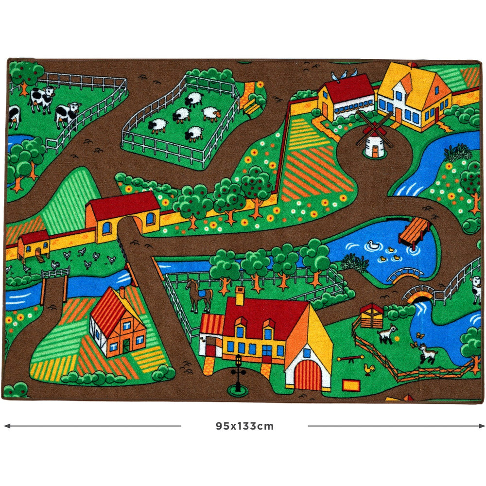 Ge ditt barns rum en lekfull och säker atmosfär med Rebel Roads Bondgårds lekmatta! Med dess lantliga motiv och detaljerade design av åkrar, djur och stall kommer denna matta garanterat att inspirera och stimulera barnets fantasi, vilket uppmuntrar till kreativ lek och inlärning. Tillverkad av polyamid och med en halkfri latexbotten, erbjuder den både säkerhet och hållbarhet, perfekt för aktiva lekstunder.