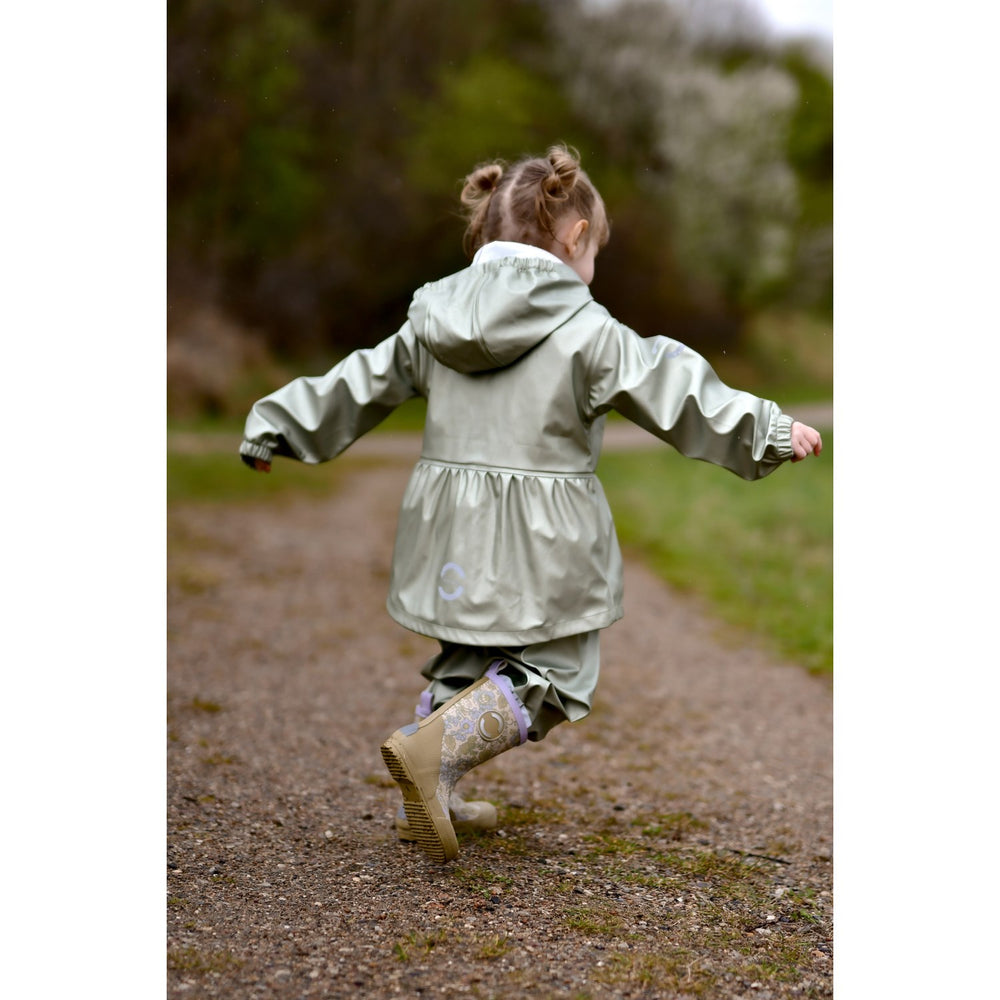 Användbarheten sträcker sig längre genom att regnstället är utrustat med en namnbricka som kan rymma flera namn – idealiskt för syskon eller vidaregivning till en vän. Fri från skadliga ämnen och certifierad enligt OEKO-TEX® Standard 100, kan du känna dig trygg med att ditt barn bär kläder som är både säkra och hållbara. Utrusta ditt barn med Mikk-Line Green Bay PU Metallic Rain Set och låt dem njuta av varenda regnig dag med lek och skratt!