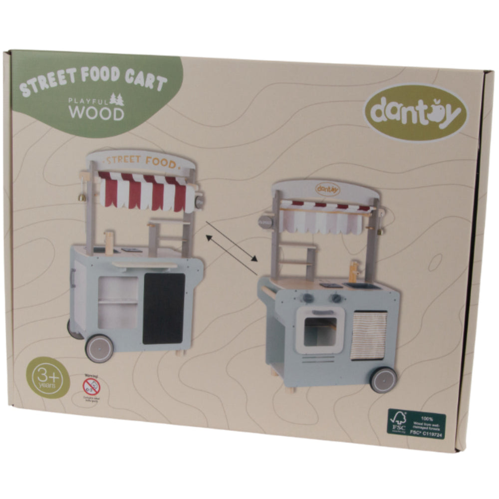 Upptäck glädjen i kökslekar med vår charmiga Street Food Vogn från Dantoy, perfekt designad för barnens säkra och interaktiva lek. Denna leksak är tillverkad av hållbart trä och har en inbjudande design med runda former och lugna färger som smälter väl in i såväl vardagsrummet som i barnrummet.