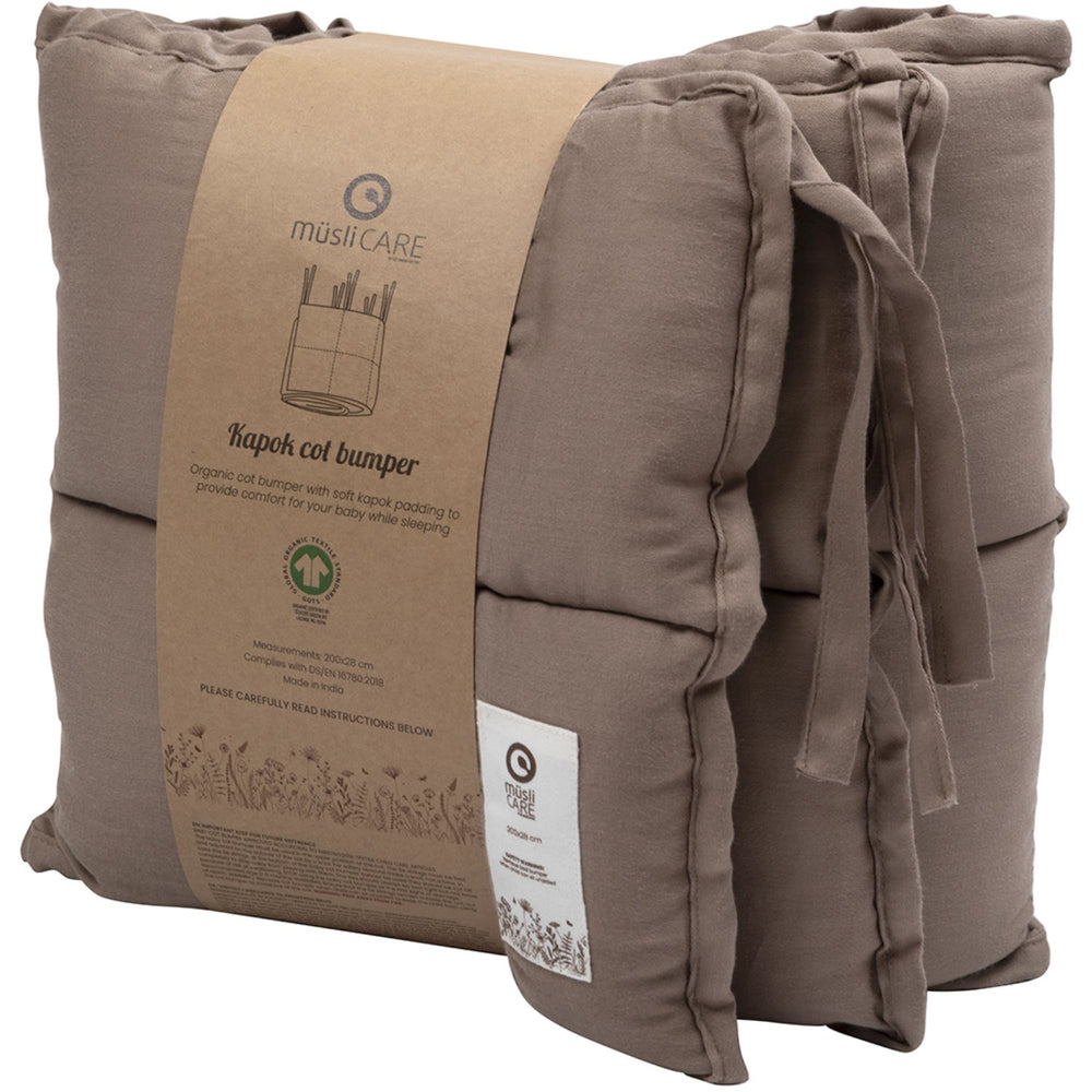 Upptäck den mysiga och trygga känslan med Müsli Walnut Kapok Bumper Long, en spjälsängsstötfångare utformad för att skänka säkerhet och komfort till ditt barns sovmiljö. Den är tillverkad av 100% ekologisk satinvävd bomull med en fyllning av kapok, känd för sin andningsförmåga och mjukhet. Med sina mått på 200 x 28 cm passar den de flesta vanliga spjälsängar, och kan enkelt justeras för att passa även mindre sängar genom att överlappa ändarna.