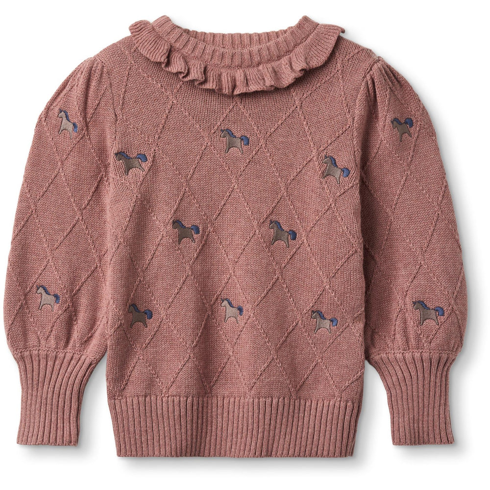 Förvandla vardagen till ett magiskt äventyr med Fliink Ash Rose Lucie Unicorn Pullover. Denna charmiga stickade tröja är tillverkad av en högkvalitativ blandning av 85% ekologisk bomull och 15% ull, vilket gör den både mjuk och varm. Tröjan pryds av ett lekfullt harlekinmönster och sötbroderade enhörningar på ärmarna samt fram och bak, perfekt för liten fantasi.