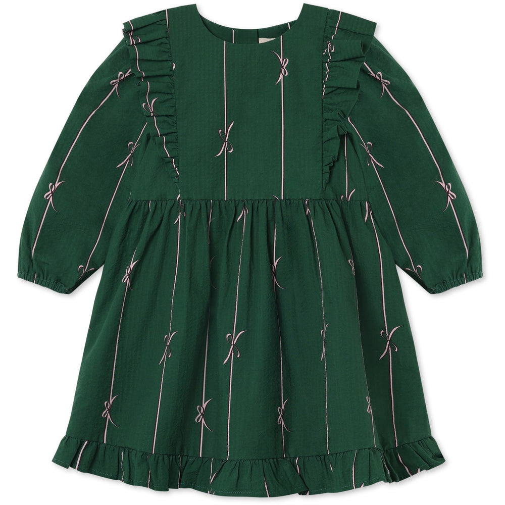 Fliink Hunter Green Bow Aop Bowie Ls Klänning