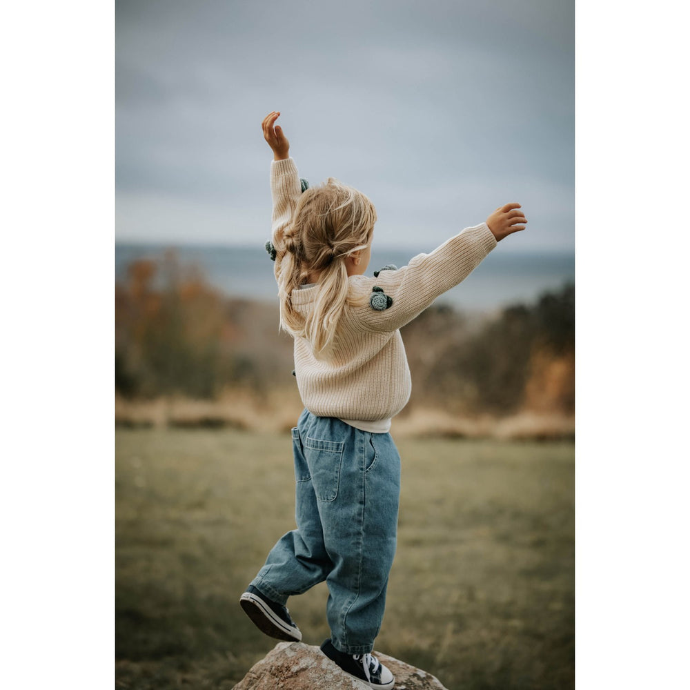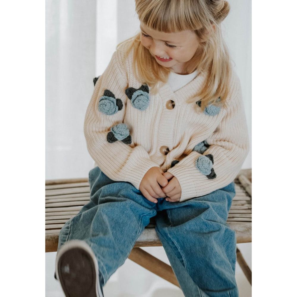 Upplev värmen från vår Fliink Sandshell Cool Flower Cardigan, perfekt för de små. Tillverkad av 100% bomull, kombineras kvaliteten med ett unikt patenterat stickmönster för ökad tjocklek och komfort. Designen är klassisk med en V-ringning och detaljrika, handgjorda stickade rosor i blått och grönt. Den erbjuder inte bara stil utan också bekvämlighet med sina praktiska knappar fram. Följ skötselråden noggrant: handtvätt, undvik blekning, torktumling och stryk på lägsta temperatur för att behålla dess skönhet och kvalitet. Denna kofta är en fantastisk kombination av funktionalitet och charm för ditt barns garderob.