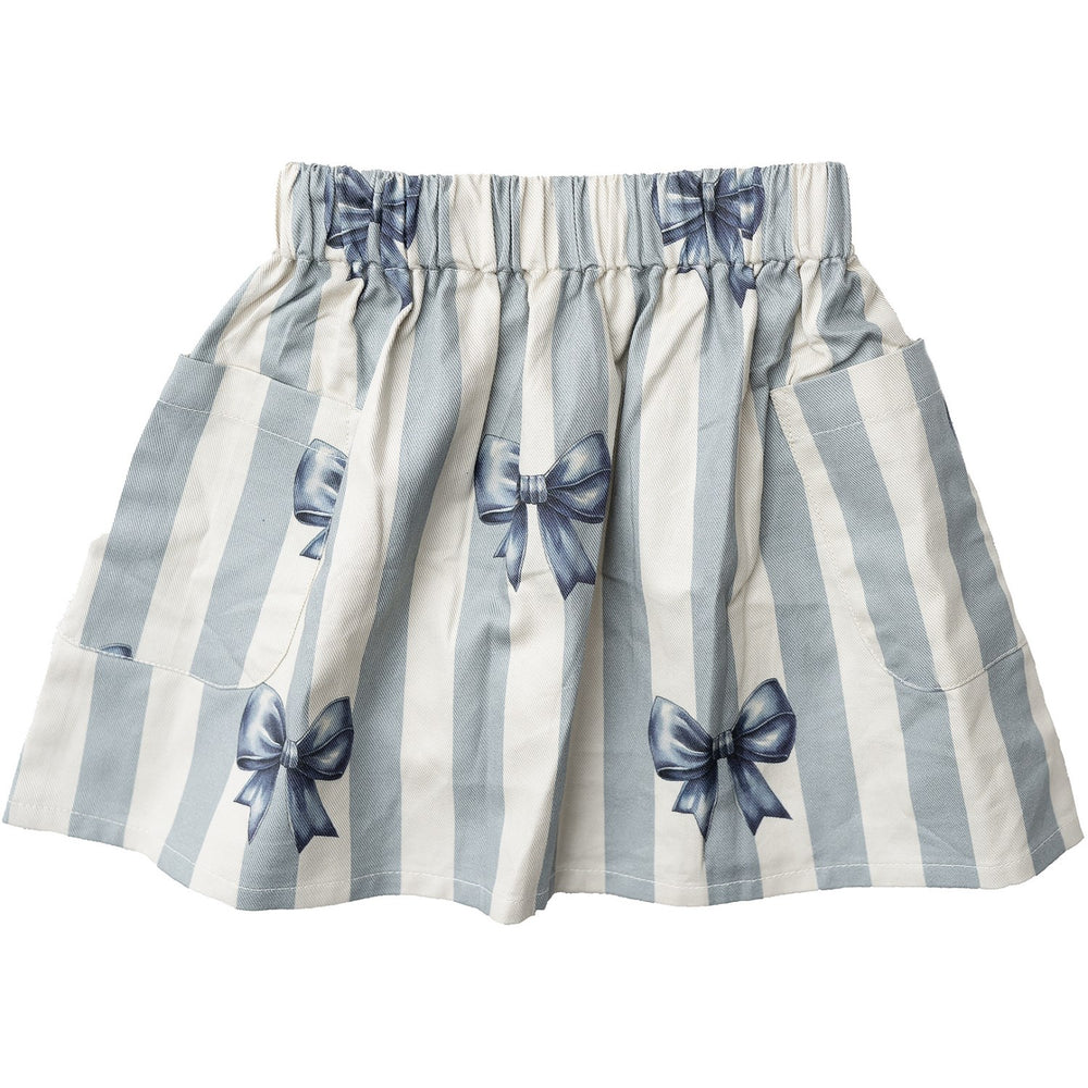 Upptäck vår charmiga "Hanevild Rainy Rosett Kjol" – perfekt för lekfulla dagar! Tillverkad i 100 % ren bomull, erbjuder denna kjol både stil och komfort. Med sin klassiska A-skärning, trendiga tryck av blå ränder och söta rosetter, blir den snabbt en favorit. Praktiska sidofickor och ett mjukt, elastiskt midjeband gör den både funktionell och bekväm. Enkel att sköta; tvätta i 30 grader och torka plant. Idealisk för varje barns garderob!