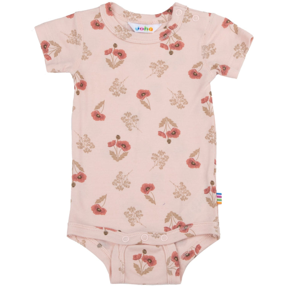Designen är genomtänkt med korta ärmar som gör den idealisk för varmare dagar eller som ett bekvämt baslager under kyligare månader. Praktiska tryckknappar på ena axeln och mellan benen underlättar påklädningen och blöjbyten, vilket gör den till en favorit för både barn och föräldrar.