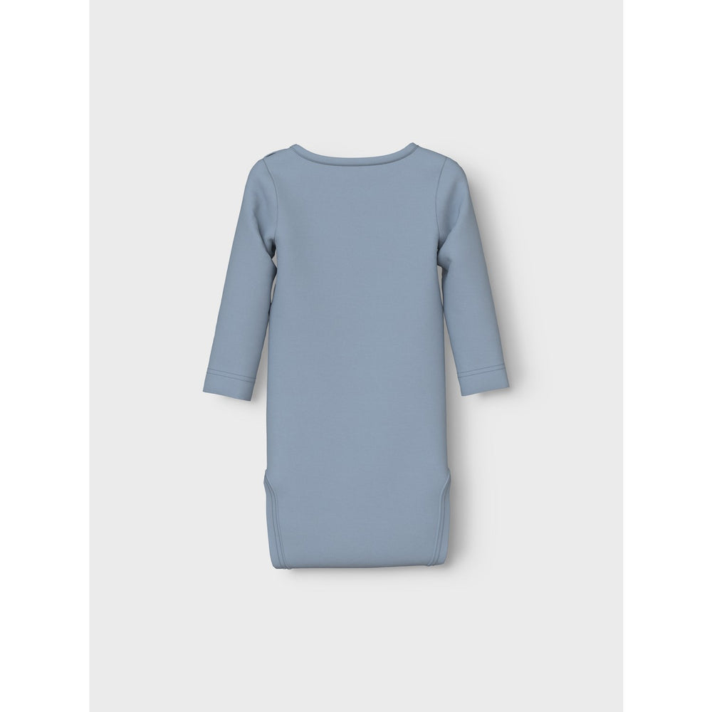 Uppdatera din lilla ängels garderob med vår 'Name It Dusty Blue Nbmlife Ls Body', designad för att erbjuda komfort och stil genom alla säsonger. Tillverkad i jersey, ett material känt för sin lättvikt och stretchighet, garanterar denna bodysuit en mjuk känsla mot huden samt frihet att röra sig utan begränsningar. Med sitt charmiga dammblå färgschema och diskreta mönster, är den lika snygg som den är funktionell. Den runda halsen och långa ärmarna ger skydd samtidigt som de bevarar rörligheten, medan tryckknapparna vid stängningen underlättar på- och avklädning. Sköt om denna bodysuit enkelt – den är praktisk för både maskintvätt och handtvätt. Perfekt för lek såväl som för vila, den här bodysuiten kombinerar stil med bekvämlighet och säkerhet.