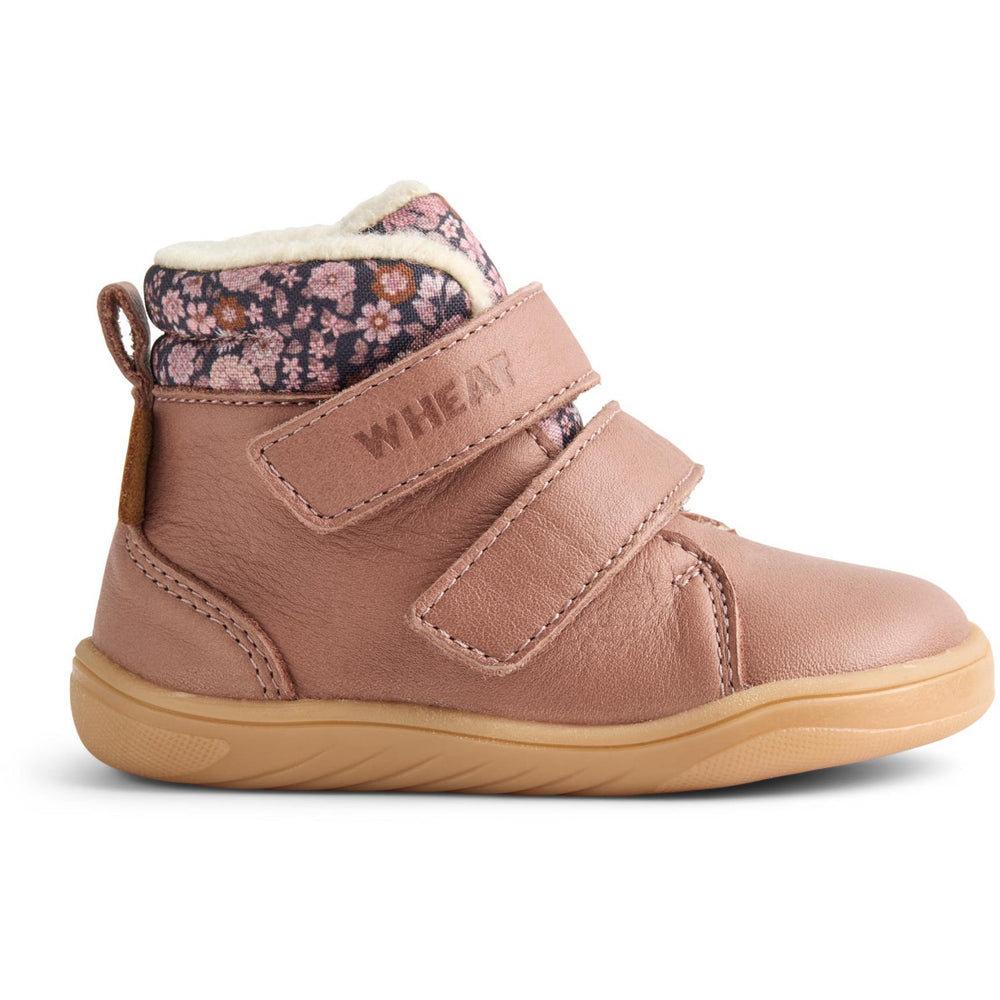 Gör vinterdagarna varmare och bekvämare för ditt barn med Wheat Old Rose Winter Boots Sixan Tex. Dessa vinterstövlar är perfekt anpassade till små barns fötter med en barfotapassform som säkerställer en naturlig och hälsosam utveckling av fötterna. Dessa stövlar är tillverkade av andningsbart och slitstarkt LWG-certifierat läder med charmiga mockadetaljer och kombinerar funktionalitet med snygg design. Kängans insida är fodrad med ett tunt lager ull och integrerad med ett Tex-membran som är 100% vattentätt och andas, perfekt för både höst- och vinterbruk. Detta säkerställer att ditt barns fötter håller sig torra och varma, oavsett väder. Komforten är på topp med en mjuk latexinnersula fodrad med ull, som ger ett mjukt stöd och behaglig värme. Med en dubbel kardborrestängning är stövlarna lätta att ta på och de kan justeras för att uppnå perfekt passform. Yttersulan i gummi erbjuder flexibilitet och grepp för att hjälpa ditt barn att röra sig fritt på alla underlag samtidigt som den ger extra skydd vid tårna. Dessa vinterkängor från Wheat är inte bara praktiska och hållbara, utan också vackert designade med sitt signaturtryck i en subtil gammelrosa färg som enkelt kan matchas med vilken vintergarderob som helst. Ge ditt barn den optimala starten på vinteräventyret med dessa snygga och funktionella stövlar!
