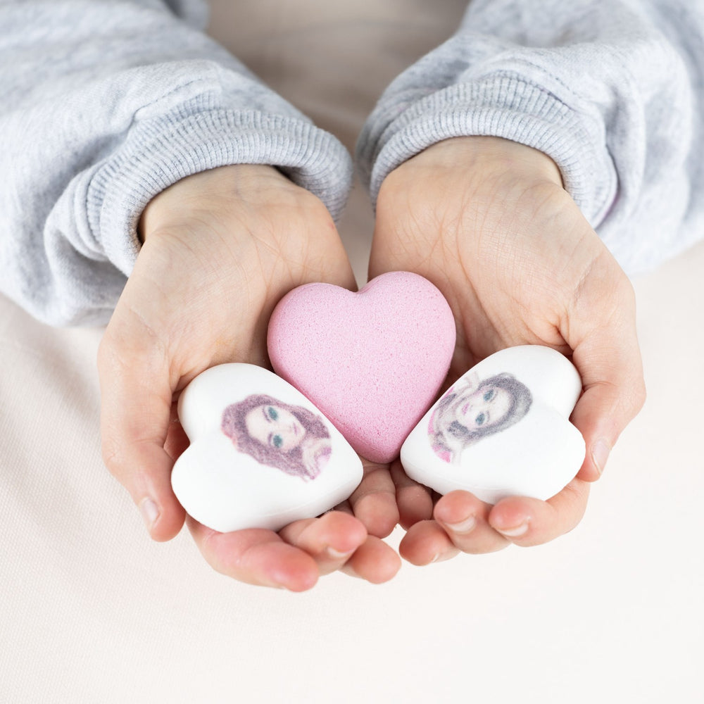 Upplev magin i badstunden med TOPModel Beauty And Me Printed Bathfizzers! Dessa charmiga hjärtformade badbomber kommer i ett set om tre, varav två är vita med ett stilfullt modellmotiv och en i en lekfull rosa färg. Perfekt för att göra badtiden till en rolig och avkopplande upplevelse, dessa badbomber är snabblösande i varmt vatten och sprider en ljuvlig doft av jordgubbar som förvandlar varje bad till en harmonisk stund. Tillverkade på 3x 30g vardera, de här badbomberna är inte bara underbara att se på utan också praktiska i storlek för enkel användning och förvaring. Notera att produkten inte är lämplig för barn under 36 månader och bör hanteras med försiktighet för att undvika kontakt med ögon och mun. Låt ditt barn njuta av en oförglömlig och stimulerande badupplevelse med dessa badbomber från TOPModel som kombinerar säkerhet och skoj.