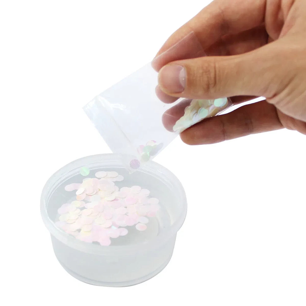 Låt din kreativitet blomstra med Glitzy Slimy! Detta set ger möjlighet att skapa sitt eget glittrande slem, perfekt för barnet som älskar att utforska och uttrycka sig genom skoj och lek. Med 120 gram transparent Slimy och ett generöst urval av glitter i rosa, guld, blått och vitt kan ditt barn skapa ett personligt slime med massor av skimmer. Produkten är utformad för att främja finmotorik och sensorisk stimulering genom beröring och syn, vilket gör den till ett utmärkt sätt att stimulera barns utveckling på kreativa och färgglada sätt. Det är lätt att hantera och ger barnen en känsla av stolthet och glädje i att skapa något unikt. Glitzy Slimy är idealisk för användning hemma eller för små sammankomster, där barn kan dela med sig av sina kreativa idéer och skapa sitt eget unika konstverk. Dess hållbara och säkra material säkerställer att den kan användas om och om igen, vilket också gör den till ett ekonomiskt val för föräldrar. Upplev glädjen i att se ditt barns fantasi ta form med Glitzy Slimy!