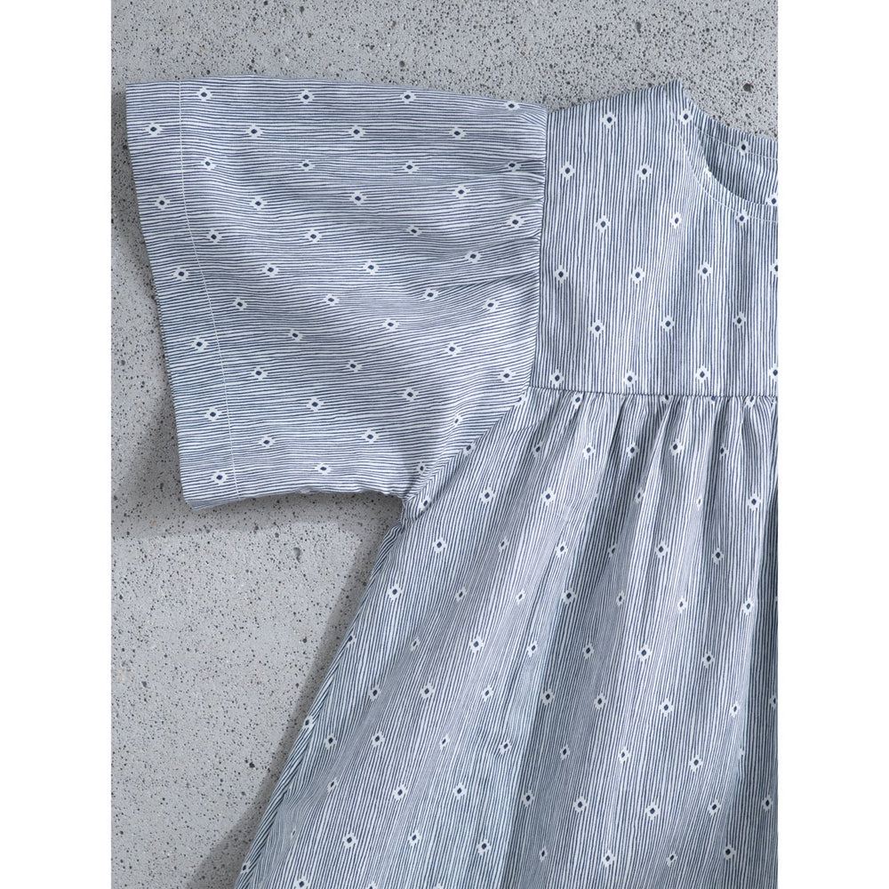 Upptäck charmen med Serendipity Indigo Gem Flair Klänning – en perfekt sommarklänning för de små! Tillverkad av 100 % ekologisk bomull, denna klänning är inte bara mjuk mot huden utan också miljövänlig tack vare GOTS-certifieringen. Med sitt tjusiga indigo-mönster och design med korta flairärmar samt en vid kjol, kombinerar den stil med komfort. Klänningen är utrustad med praktiska sidofickor och enkel knäppning i ryggen för smidig på- och avklädning. Idealisk för allt från lek i parken till sommarens festligheter!