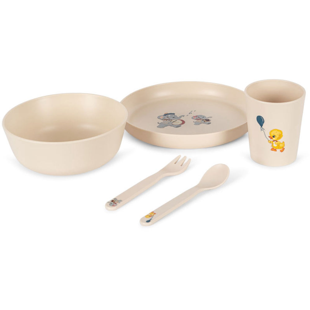Upptäck vår färgglada "Konges Sløjd Music Parade Dinner Sett", idealiskt för växande barn! Tillverkat av 100 % återvunnen PET, vilket gör det både miljövänligt och säkert för ditt barn. Settet inkluderar en skål, en tallrik, en kopp och bestick som är perfekt anpassade för små händer. Hållbart och lätt att rengöra, detta middagsservis är inte bara en fröjd för ögat utan även designat för att stimulera barnets utveckling vid måltiderna. Lämplig från 18 månader och uppåt.