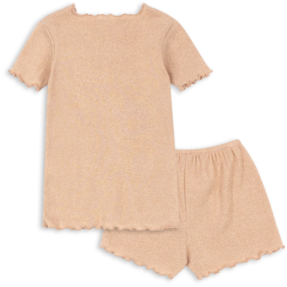 Upplev komforten och stilen med Konges Sløjd Moonlight Roli Sets för barn. Denna set inkluderar en mjuk t-shirt och matchande shorts utformade i stretchig ribbad design, perfekt för barnets rörelsefrihet. Den harmoniska färgsättningen och det diskreta mönstret lägger till en charmig touch. Enkel att sköta, detta set är idealiskt för både lek och avslappning.