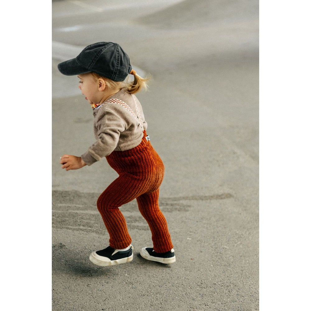 Mormor fotlösa strumpbyxor med hängslen tar design och stil till en ny nivå. Tack vare deras fotlösa design är de både praktiska och bekväma, perfekta för barnets kravlösa dagar och äventyr. Passformen är flexibel och anpassar sig väl efter barnets rörelser, samtidigt som de hållbara materialen försäkrar att plagget kan bäras om och om igen.