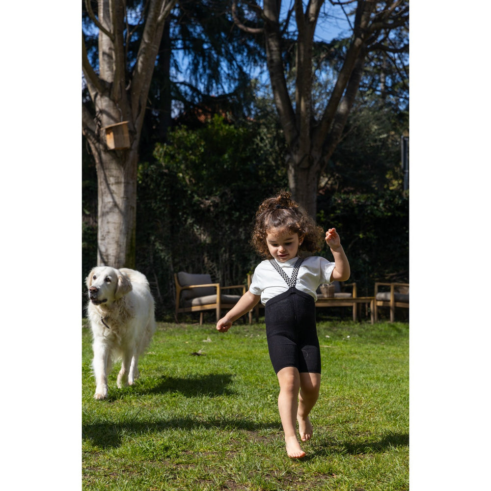 Upptäck Silly Silas Classic Black Checked Shorty Tights med hängslen, perfekta för lekfulla dagar! Dessa charmiga shorts i svart och vitt rutigt mönster är tillverkade av mjukt material som är skonsamt mot barnets hud. Med en elastisk passform och justerbara hängslen erbjuder de både komfort och stil. Lätt att sköta om – bara att tvätta i maskin. Idealiska för både vardag och fest!